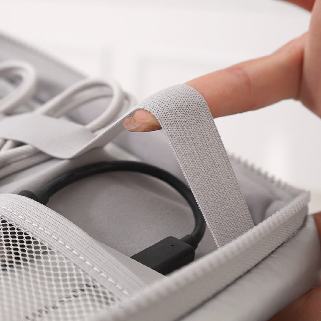 Organized Compartments: Featuring multiple compartments and pockets, this organizer allows you to neatly arrange your cables, chargers, and other small items. The thoughtful design prevents tangling and makes it easy to find what you need quickly, even when you're on the go.